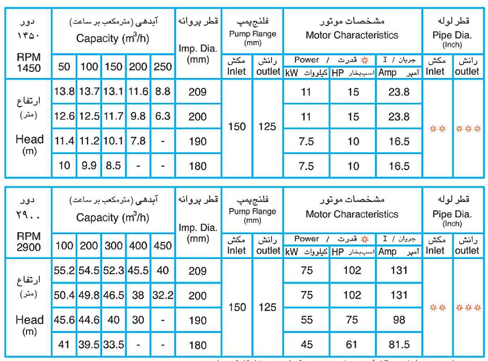 ویژگیهای پمپ ETA مدل ۲۰۰-۱۲۵
