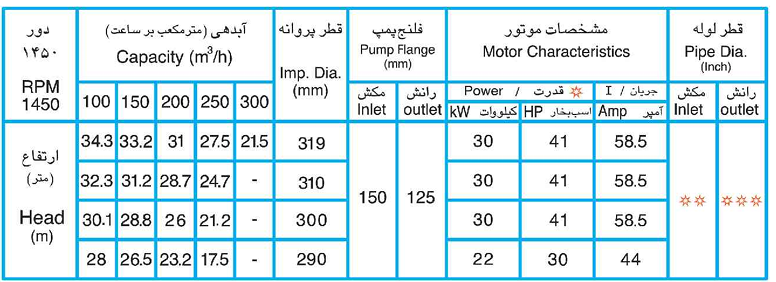 ظرفیت آبدهی : ۵ تا ۱۶۵۰ متر مکعب در ساعت